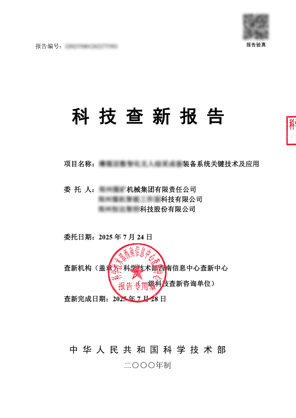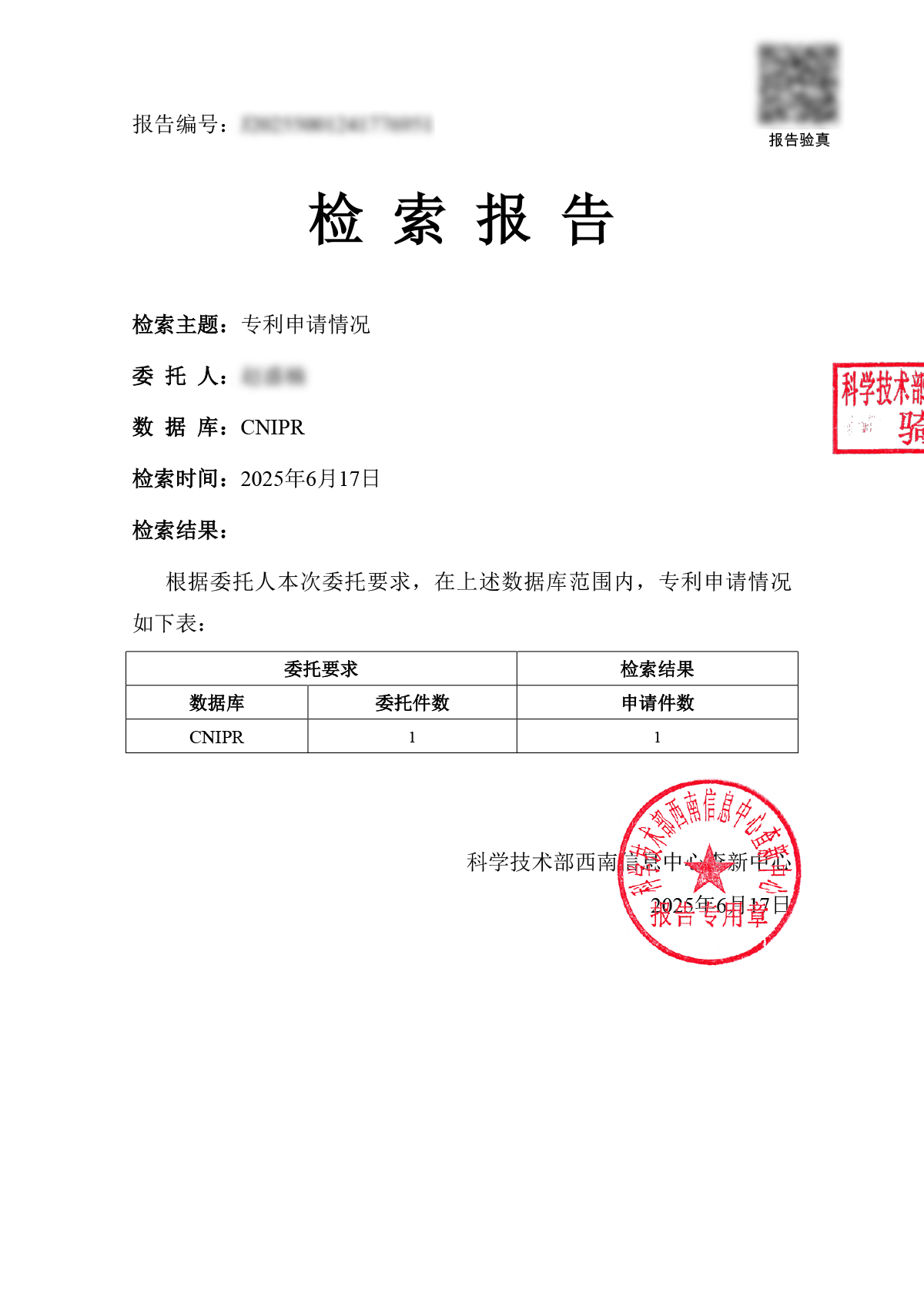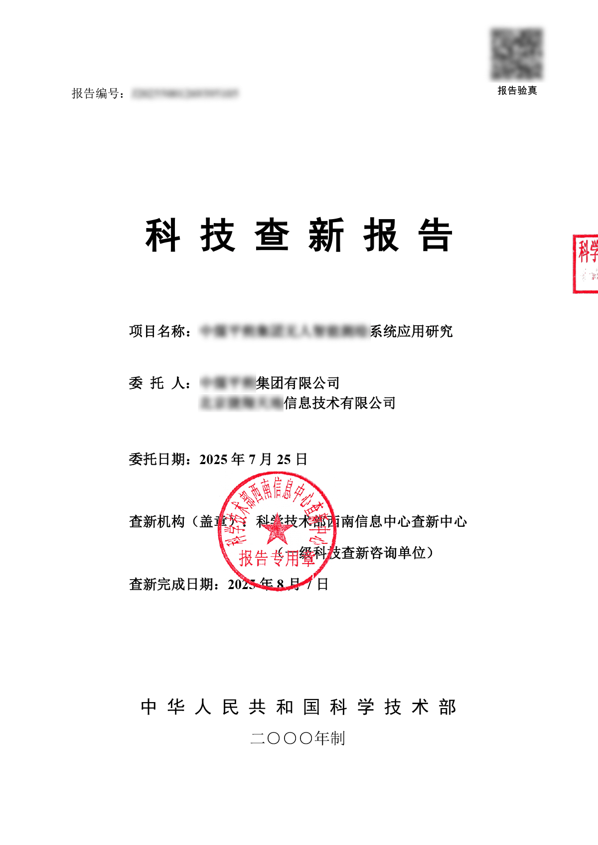 所有检索报告严格保密,以上内容已脱敏处理