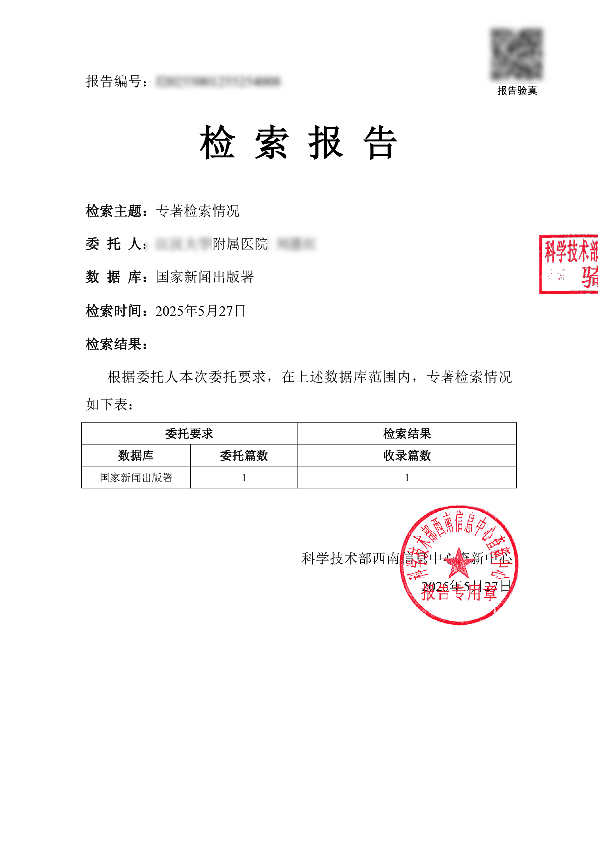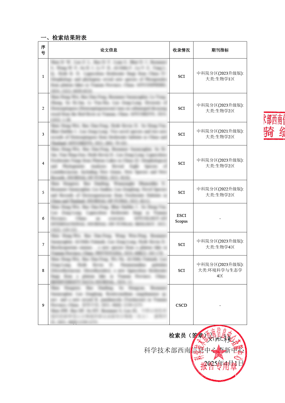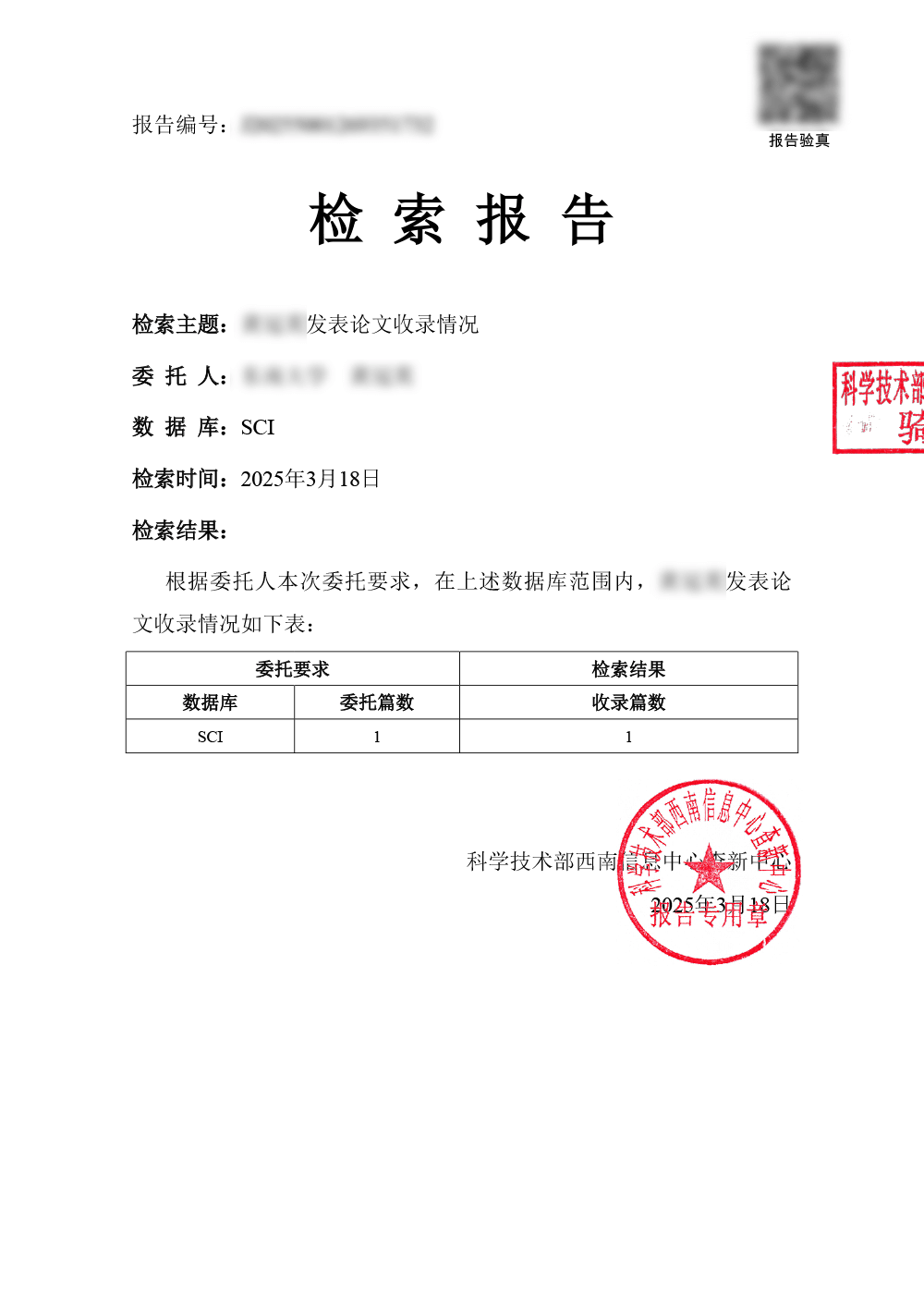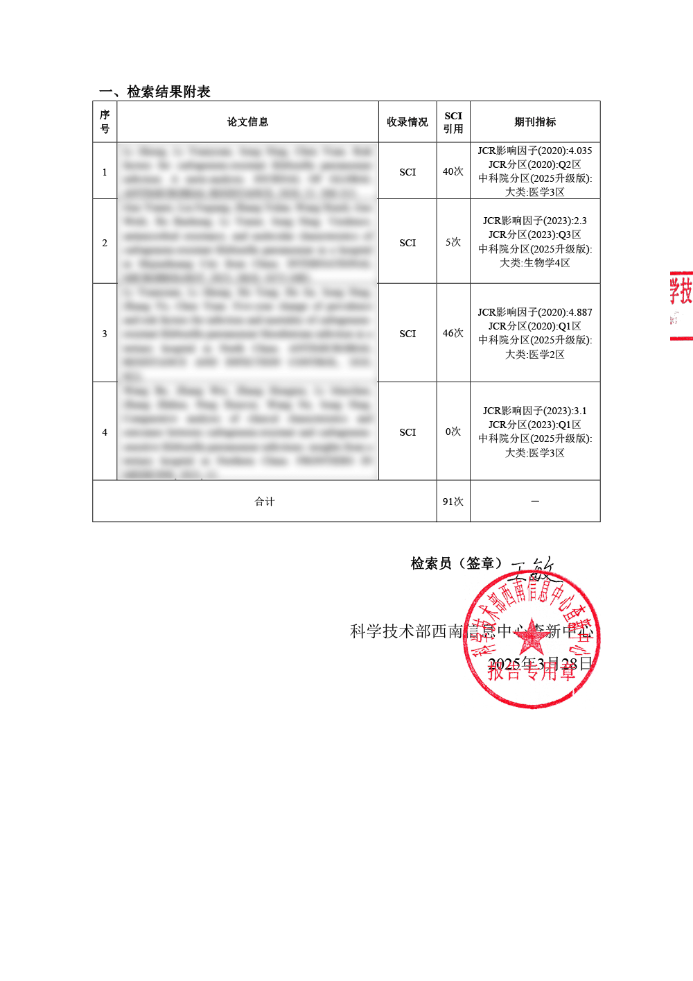 根据文献被数据库收录和引用情况,出具检索报告