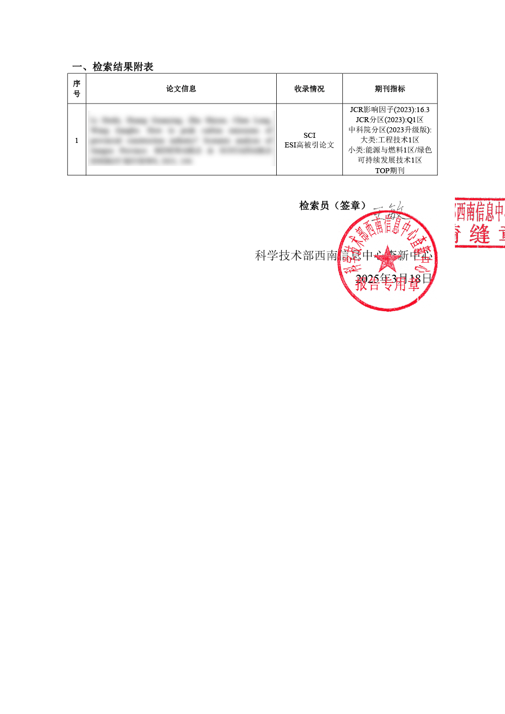 一级科技查新 咨询单位